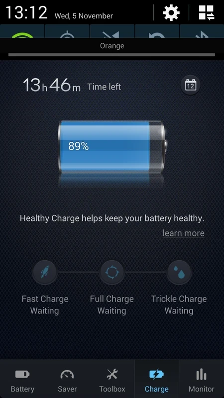 Şarj: Şarj bölümündeki ipuçları ve tavsiyelerden yararlanarak pilinizin sağlığını koruyun. Bu bölümde ayrıca kalan pil seviyesi, hızlı şarj, tam şarj veya yavaş şarj için ipuçları da gösterilir. Özellik, aylık şarj kayıtlarını izlemek için bir Takvim simgesi sunar.