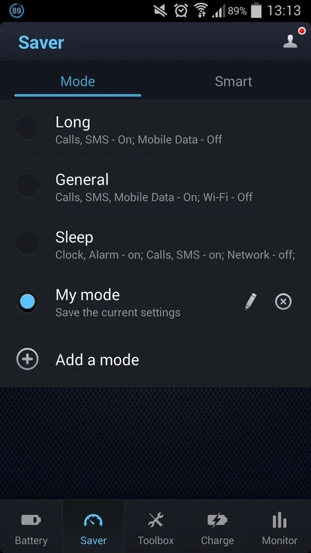 Uygulama, arama, SMS, mobil veri vb. farklı özellikleri devre dışı bırakmaya yardımcı olan çeşitli önceden ayarlanmış akıllı modlar sunarak pil tüketimini yapılandırmanıza olanak tanır. Uygulama ayrıca varsayılan yapılandırma için bazı varsayılan modlar da sunar. Tercihlerinize göre farklı akıllı pil tasarrufu modlarına geçebilirsiniz. Otomatik temizleme programı ayarlayabilir, önemsiz uygulamaları "Yoksayılan Uygulamalar Listesi"ne ekleyerek temizleyebilir ve ekran kilidinde gereksiz tüm arka plan işlemlerini sonlandırabilirsiniz.